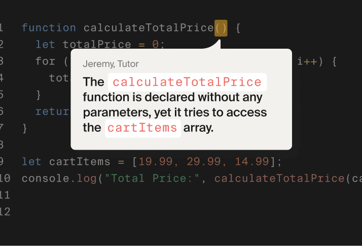 Get instant hints from Dot, our friendly AI assistant, or connect with an instructor who works in the field you’re entering.